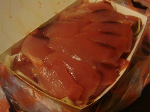 她卻沒有停手之意,直至一整條魚全部切入我們的便當盒~我還不確定的問”真的只要200元嗎?”